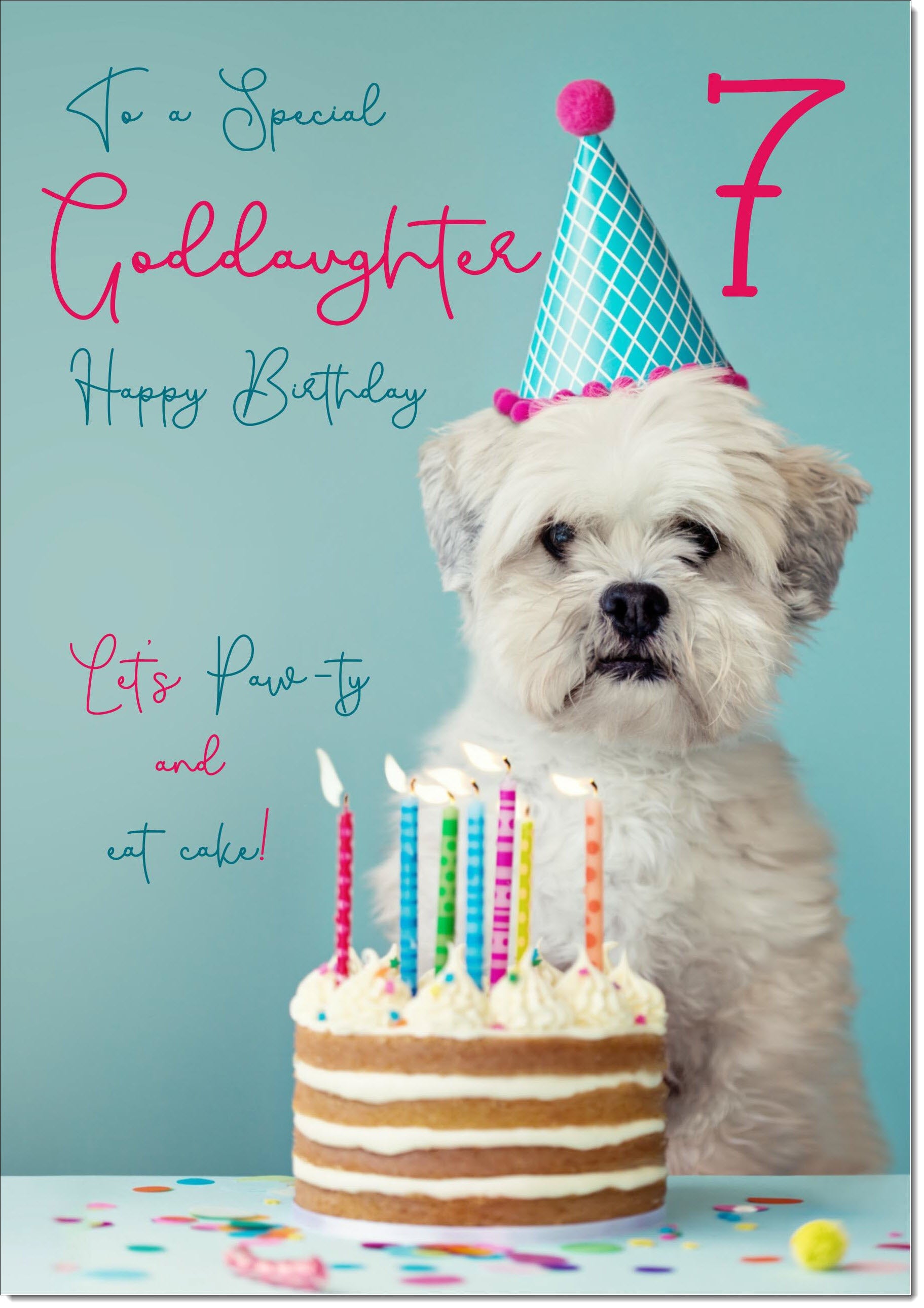 Goddaughter 7th Birthday Card Age 7 Birthday Dog