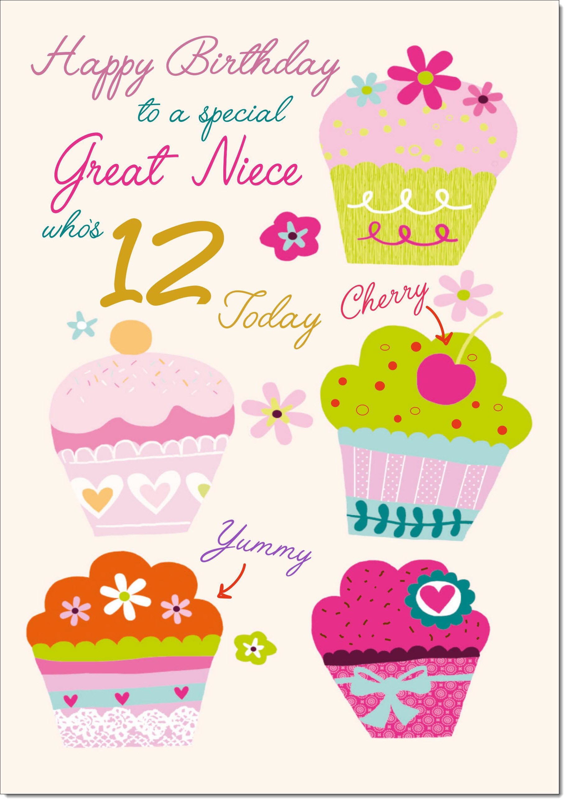 Great Niece 12th Birthday Card Age 12 Bright Cupcakes